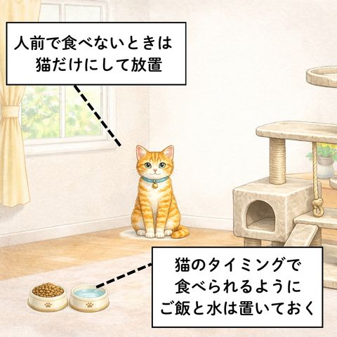 でも、これは猫が警戒しているだけだったんですね。私が見ている前では緊張して食べられなかっただけで、食欲がないわけじゃなかったんです。